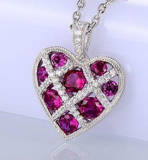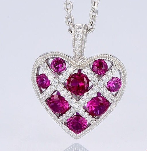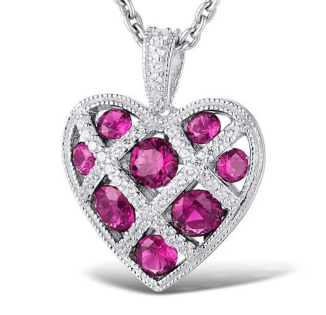 Edler Herz-Anhänger aus 925 Silber mit rubinroten Steinen & Zirkonia