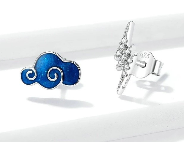 Kinder Ohrstecker 925 Silber Wolke & Blitz – mit Zirkonia & blauer Emaille