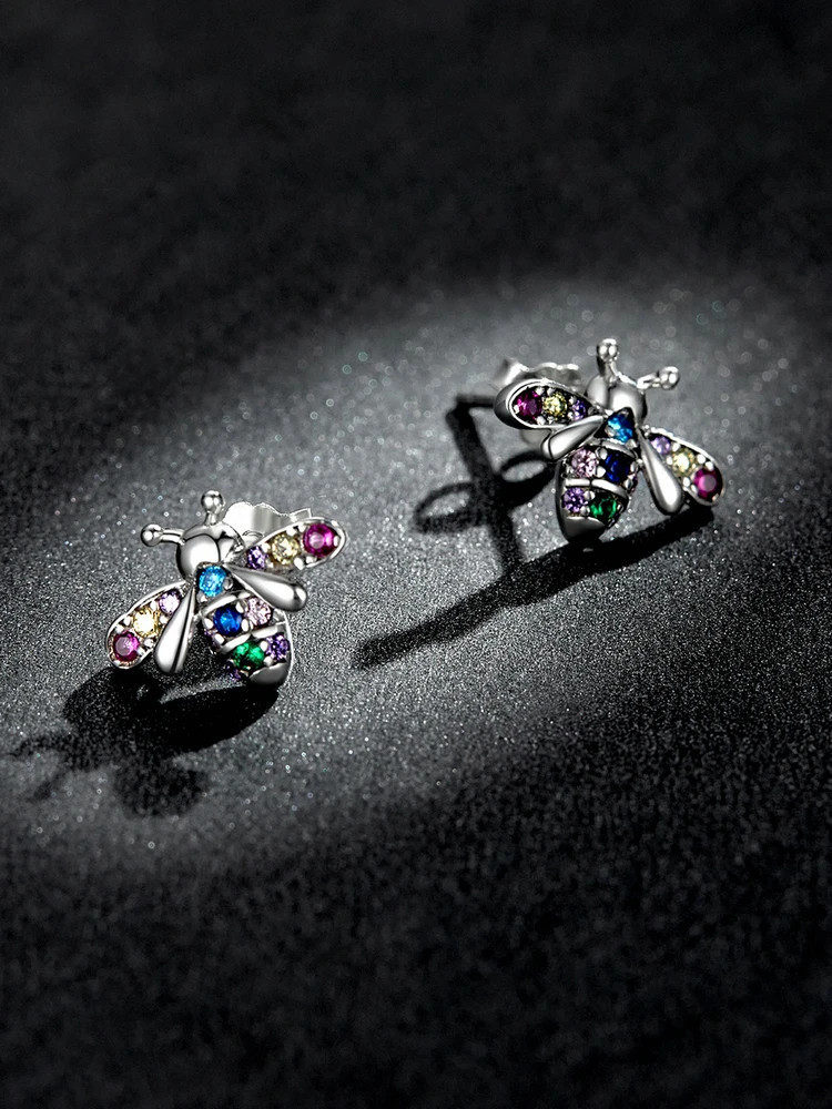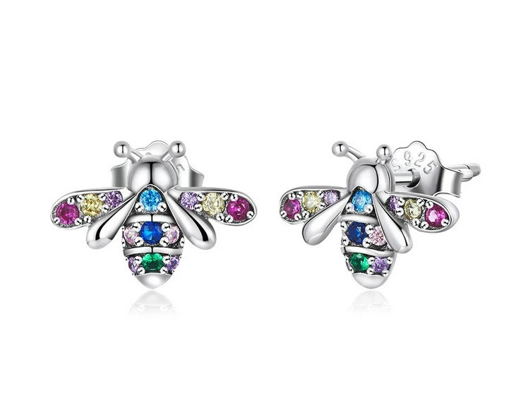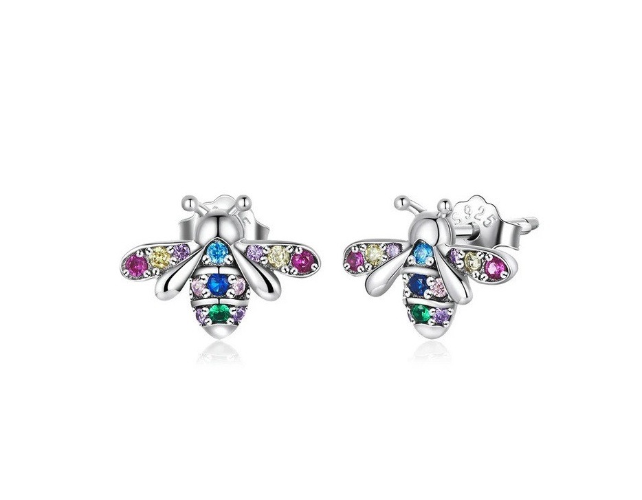 Mädchen Ohrringe Biene – 925 Silber mit bunten Zirkonia