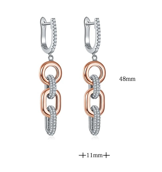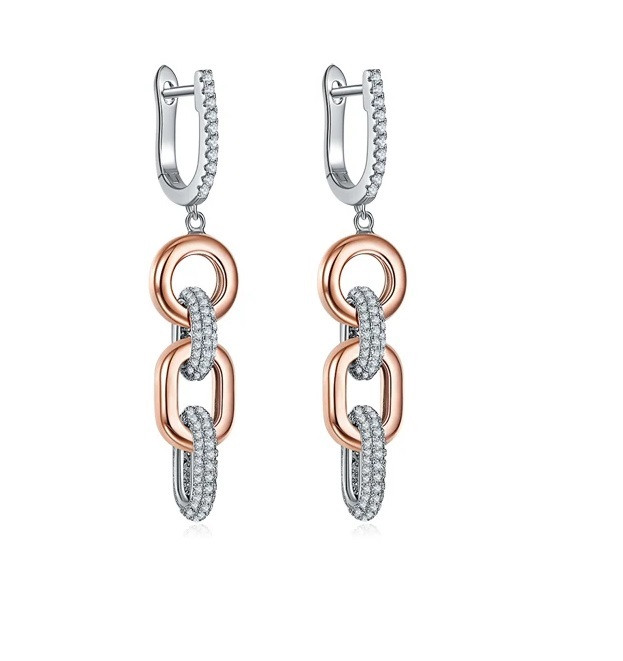 Bicolor Glieder-Ohrhänger aus 925 Silber – Roségold vergoldet mit Zirkonia