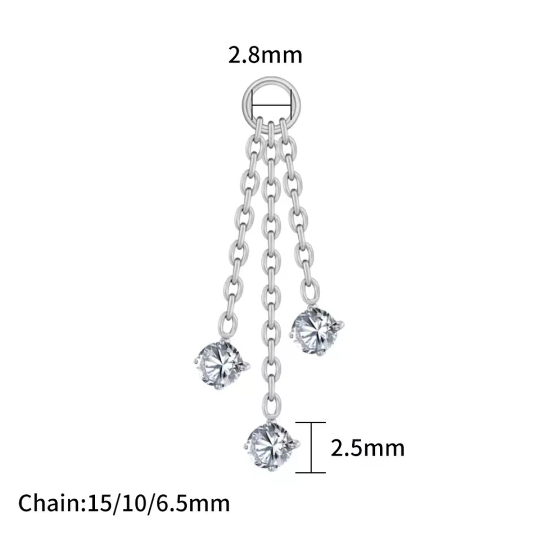 Ohrpiercing-Anhänger mit drei Schmucksteinen