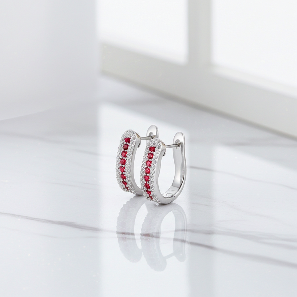 Ohrringe aus Sterling Silber 925 mit Zirkonia & Rubin – Bijouterie Schloss