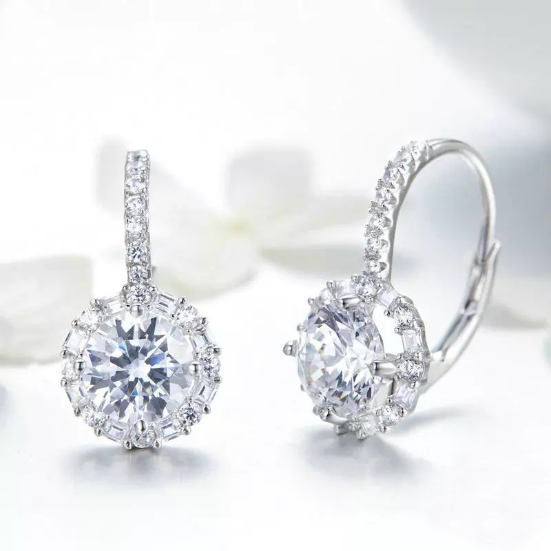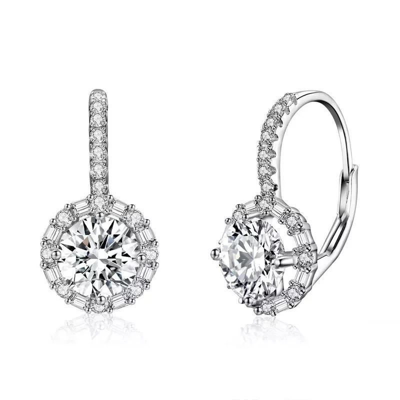 Das Zentrum jedes Ohrhängers bildet ein prachtvoller Zirkonia-Stein mit 1 Carat, der von einem funkelnden Kranz kleinerer Steine umrahmt wird. Dieses Design sorgt für eine beeindruckende Lichtbrechung, die an echte Diamanten erinnert. Dank des komfortablen Brisur-Verschlusses lassen sich die Ohrringe sicher anlegen und bieten den ganzen Tag über einen angenehmen Tragekomfort.