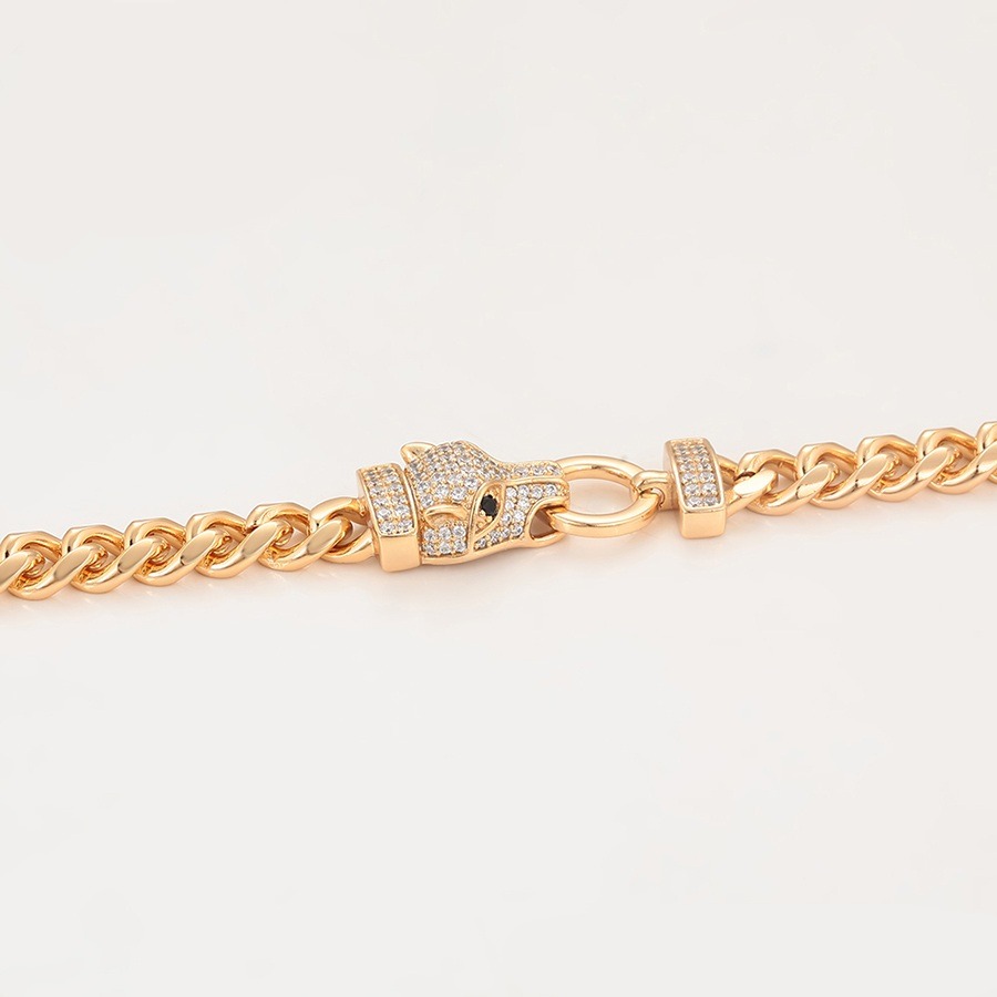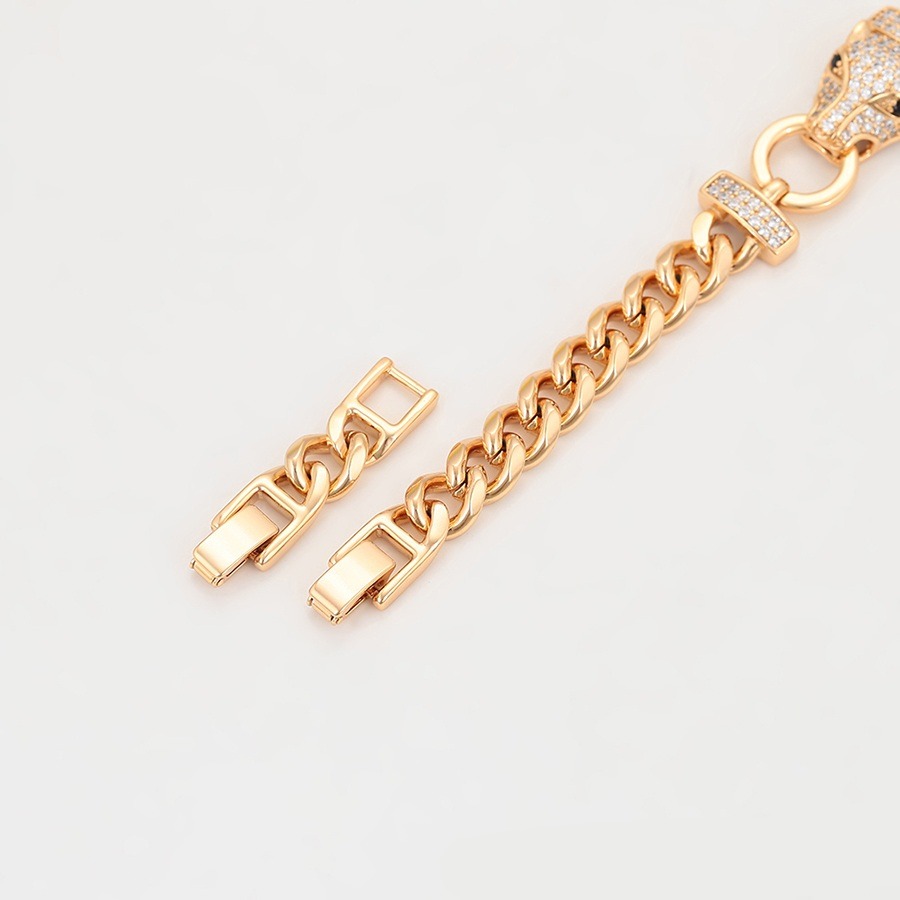 Das Highlight dieses Armbands ist der kunstvoll gearbeitete Pantherkopf, der vollständig mit funkelnden Zirkonia-Steinen besetzt ist. Mit einer Breite von 14 mm an der markantesten Stelle bildet der Raubtier-Kopf das kraftvolle Zentrum des Designs. Die klassischen, hochglanzpolierten Panzerglieder schmiegen sich perfekt an das Handgelenk an und sorgen für einen souveränen Auftritt.