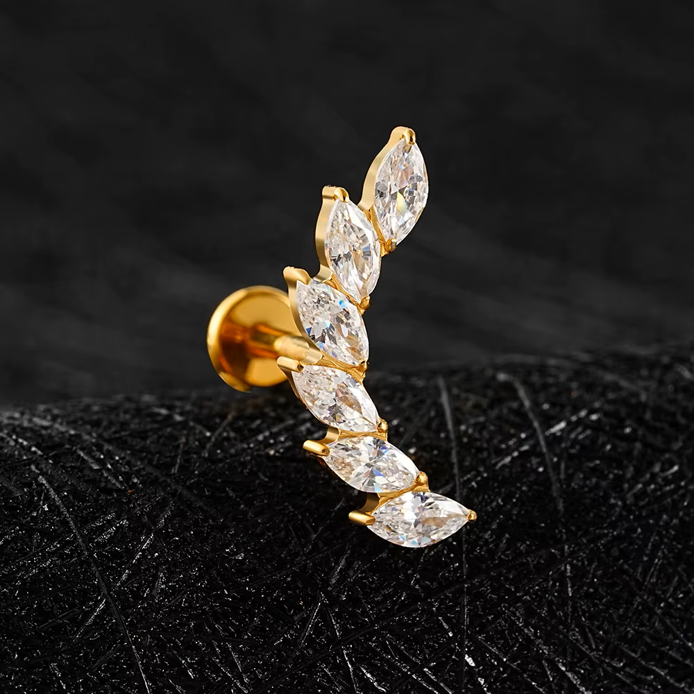 Der Labret hat eine Stabstärke von 1,2 mm und verfügt über einen sicheren Innengewindeverschluss, der ein komfortables und zuverlässiges Tragen ermöglicht. Dieser Flatback-Schmuck eignet sich ideal zur Platzierung an verschiedenen Ohrpiercings wie Ohrläppchen, Helix, Conch oder Forward Helix.