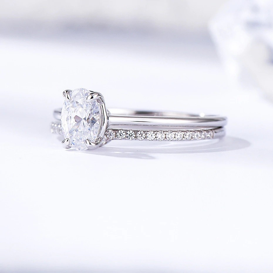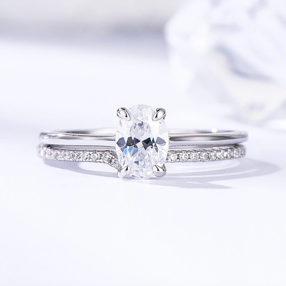 Der Mittelpunkt: Der Solitärring präsentiert einen präzise geschliffenen, ovalen Zirkonia in einer klassischen 4-Krappen-Fassung, der das Licht bei jeder Bewegung einfängt.