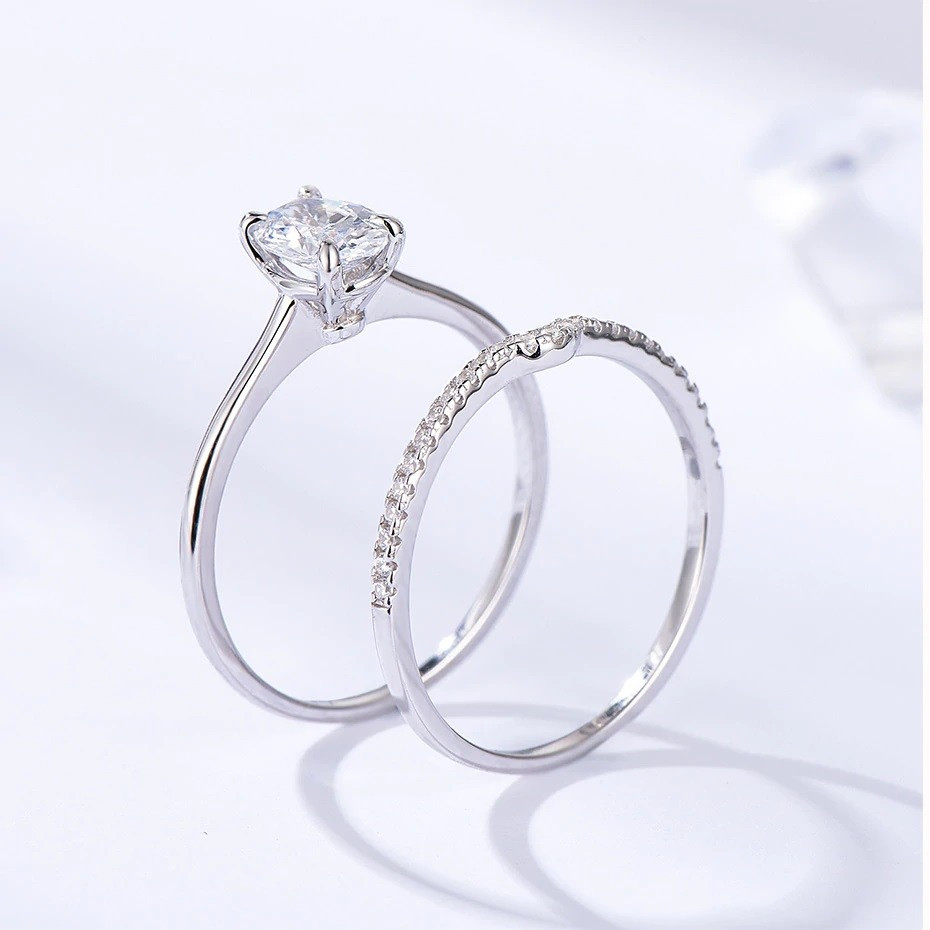 Luxuriöses Ring-Set 925 Silber: Strahlender Solitär & geschwungener Memoirering