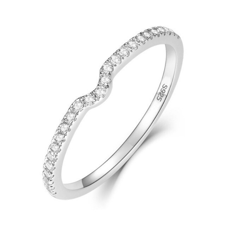 Die perfekte Ergänzung: Der filigrane Beisteckring schmiegt sich mit seiner sanften Wellenform ideal an den Hauptring an und ist mit einer Reihe kleinerer Zirkonia-Steine besetzt.