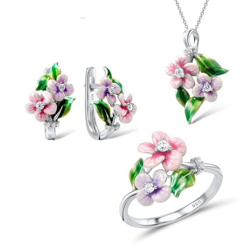 Lassen Sie Blumen sprechen! Diese exquisiten Ohrringe kombinieren klassisches Silber mit moderner Farbkraft. Jedes Detail, von den fein schattierten Blütenblättern bis hin zu den sattgrünen Blättern, zeugt von höchster handwerklicher Präzision.