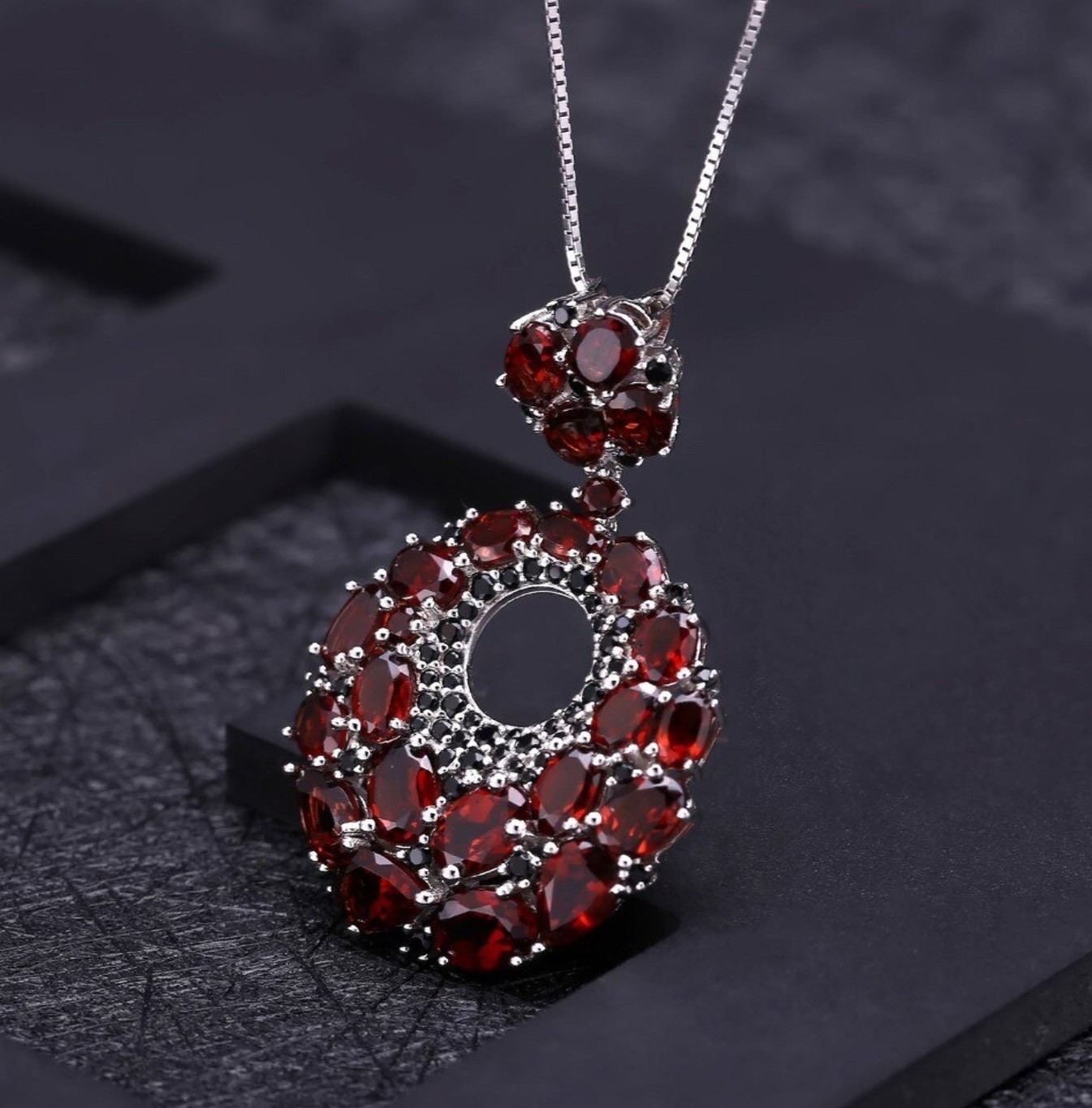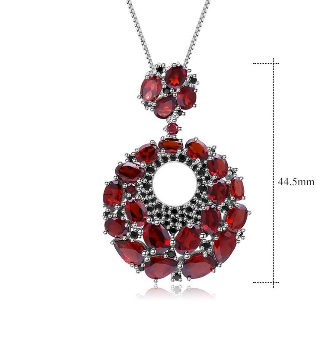 Prunkvoller Silberanhänger mit echten Granaten & schwarzem Spinell – Inkl. 45 cm Kette