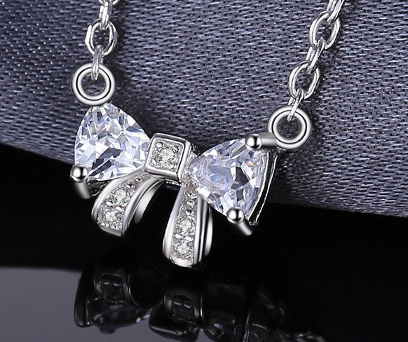 Zwei große Zirkonia im Trillion-Schliff bilden die Schleifenflügel, während der Knoten und die Bänder mit weiteren kleinen Steinen besetzt sind, um bei jeder Bewegung das Licht einzufangen. Dank des geringen Gewichts von nur 2,9 g bietet die Kette einen exzellenten Tragekomfort für den Alltag oder besondere Anlässe.