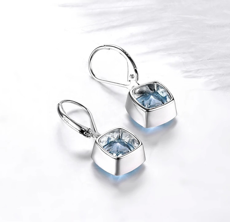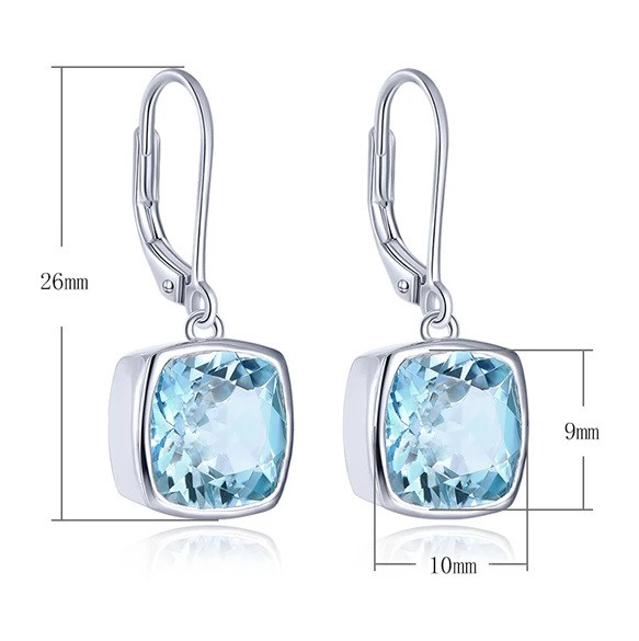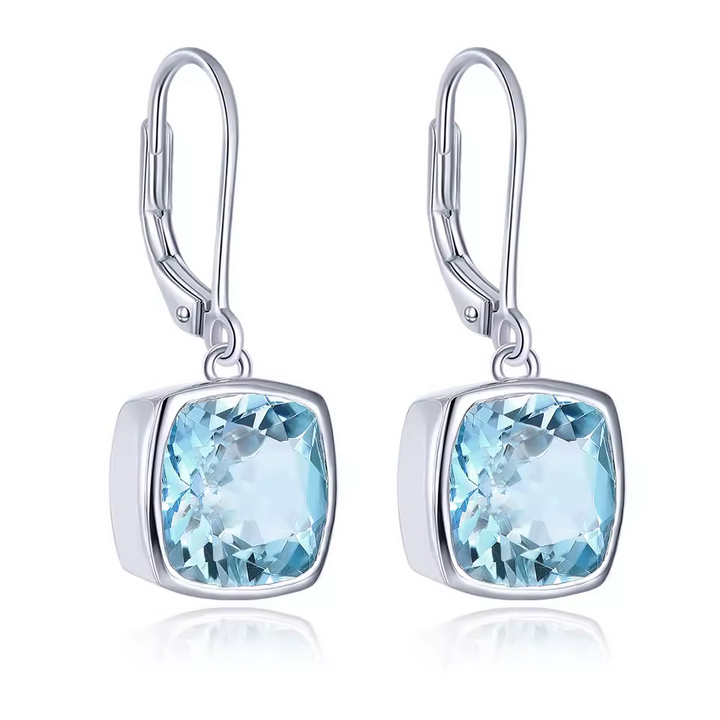 Der facettierte Kissenschliff (Cushion Cut) des Topas fängt das Licht aus jedem Winkel ein und spiegelt die Farben eines klaren Sommertages wider. Dank des schlichten, aber dennoch markanten Designs passen diese Ohrhänger sowohl zum eleganten Abendkleid als auch zum Business-Outfit.